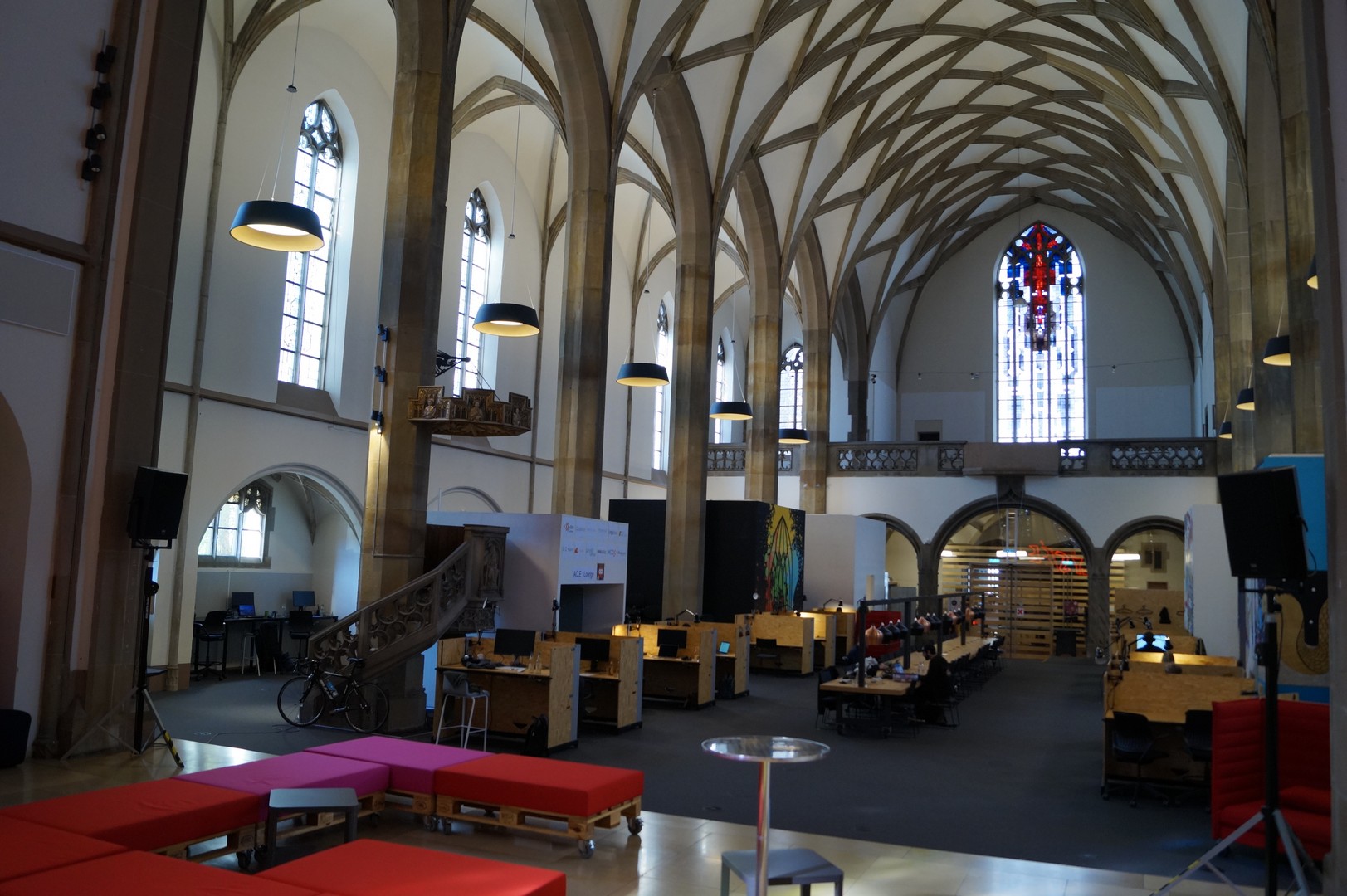 Aus der ehemaligen Kirche St. Elisabeth wurde 2017 die digitalCHURCH, der bundesweit erste CoWorking Space in einem Kirchenschiff. Die spezielle Architektur macht den Sitz des digitalHUB zu einem besonders inspirierenden Kommunikations- und Arbeitsort. In kreativer Lounge-Atmosphäre tauschen sich Startups, Mittelstand und Industrie über ihre Projekte aus – an modernen flexiblen Computer-Arbeitsplätzen im Mittelschiff, auf chilligen Sitzsäcken, in Rückzugsnischen, in der Sakristei oder an der Elysée-Bar.