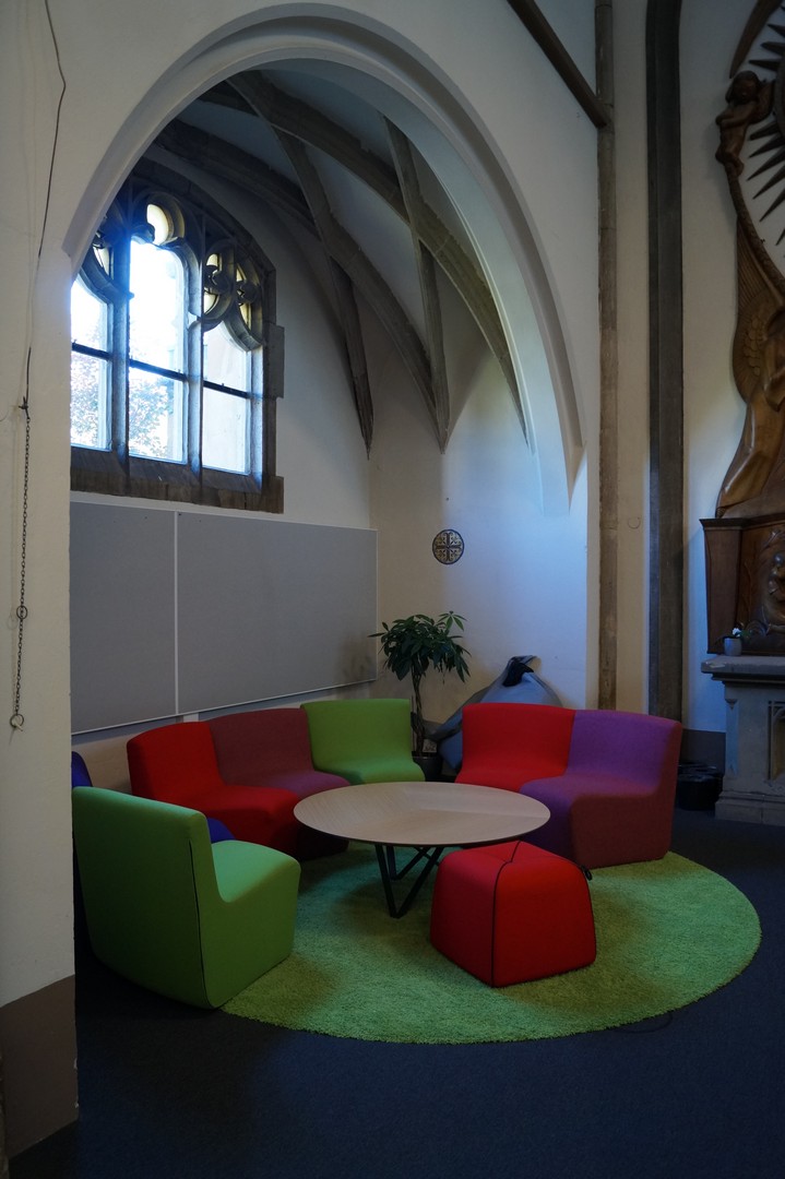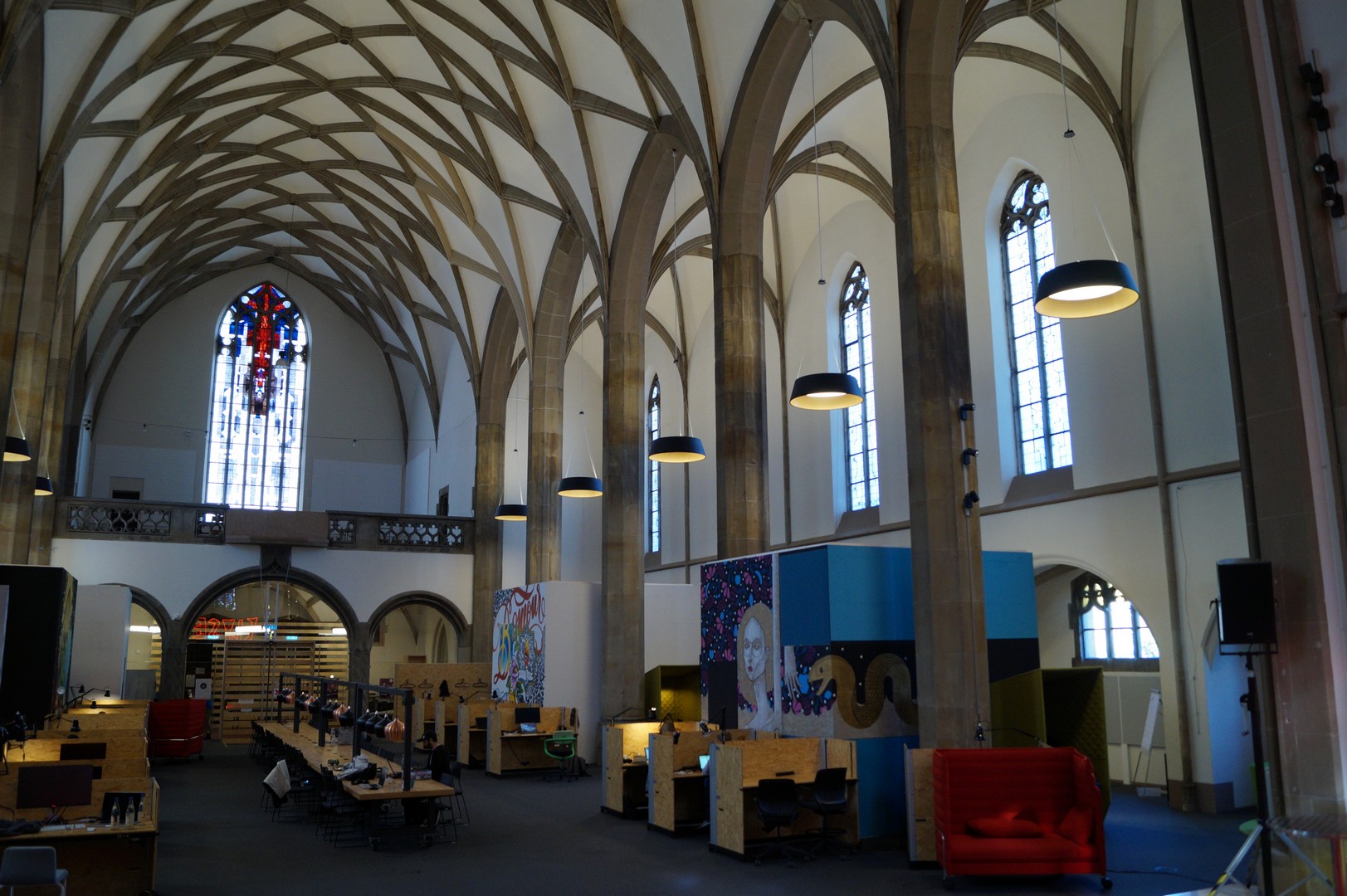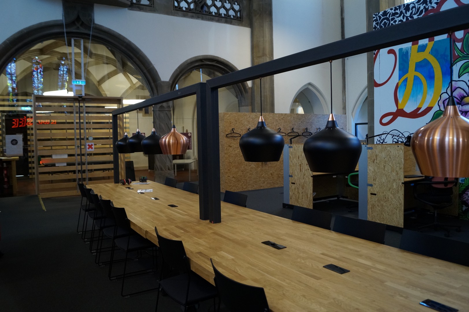 Sanierung und Umbau einer denkmalgeschützten Kirche zu einer Arbeitsstätte für ‚Start-Up‘-Unternehmer.